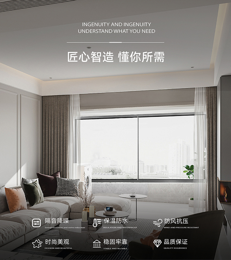 E格靜然120S推拉窗斷橋鋁合金隔斷封陽(yáng)臺(tái)隔音隔熱門(mén)窗