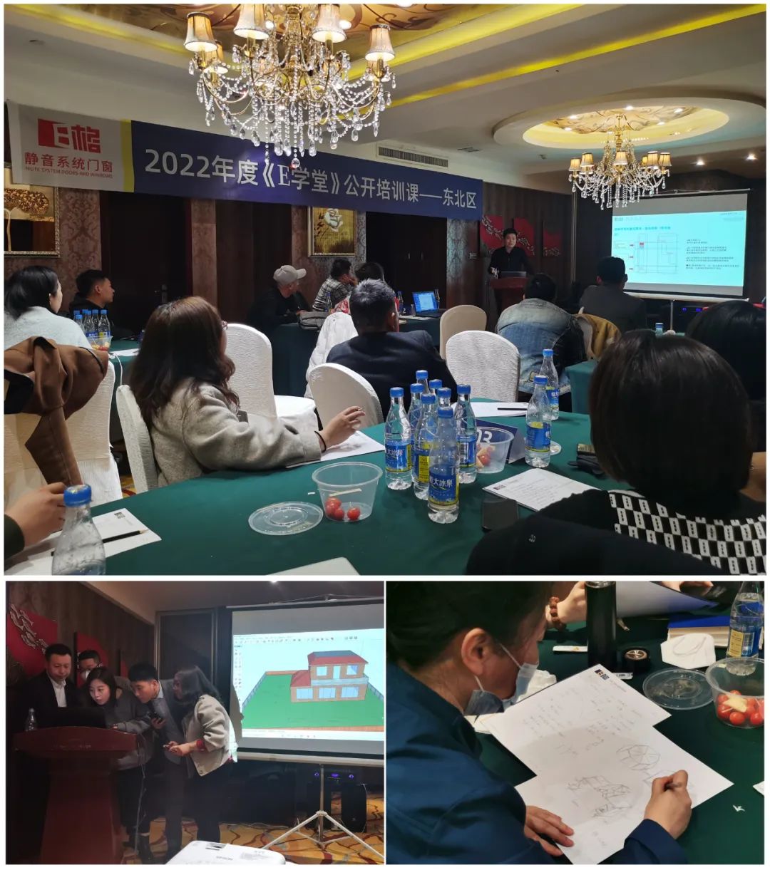 E格靜音系統(tǒng)門窗售后服務(wù)工程師包海波,就大唐·陽光房的測量、安裝,及常見的安裝施工問題,進行了現(xiàn)場的模擬講解,并向大家展示了E格全新的服務(wù)體系的魅力所在,深入到課堂中間,針對精英現(xiàn)場繪制的圖紙進行指導,手把手實操,力求讓大家不虛此行。