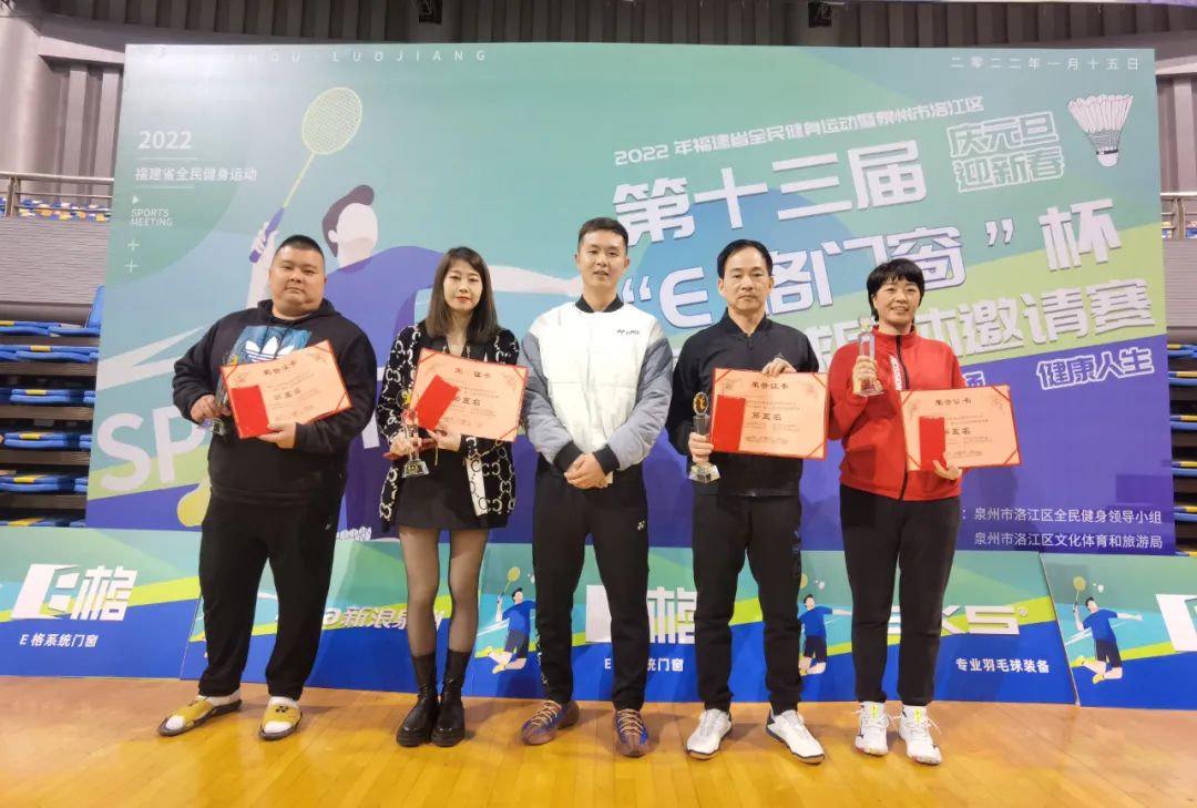 由泉州市洛江區(qū)全民健身領(lǐng)導(dǎo)小組、泉州市洛江區(qū)文化體育和旅游局主辦,泉州市洛江區(qū)體育總會(huì)、泉州市洛江區(qū)羽毛球協(xié)會(huì)共同承辦的2022年泉州市洛江區(qū)迎新春“E格門窗杯”第十三屆羽毛球團(tuán)體邀請賽于1月15日在泉州市海峽體育中心舉行開幕儀式。